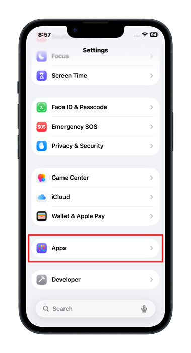 Scroll down & tap on Apps, which is where the settings for each individual app can be adjusted, including the Passwords app.