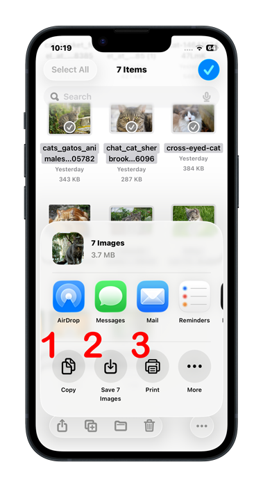 There are many other sharing options you may want to explore. Like, you can choose to print the photos, or simply tap “Copy” to paste them in another folder in the Files app, instead of the photos app. You can also import them to any app that supports that.