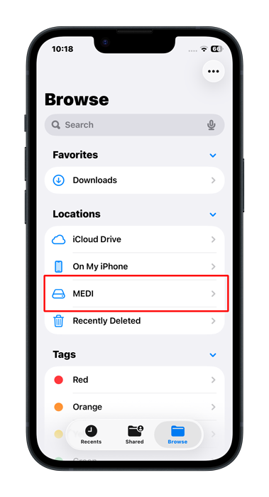 If everything is working correctly, you should see the drive you inserted in the list of locations. Tap on it:-