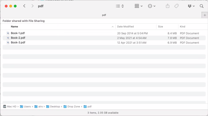 Now we need to select the files. This can be done in multiple of ways. Hold down the Command key (⌘) on the keyboard, then click on the PDF files to select them one after the other. You can also select all the files in the folder by pressing ⌘ + A on the keyboard:-