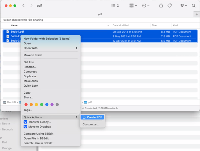 In Finder, place the PDF files you want to merge into one in one folder.