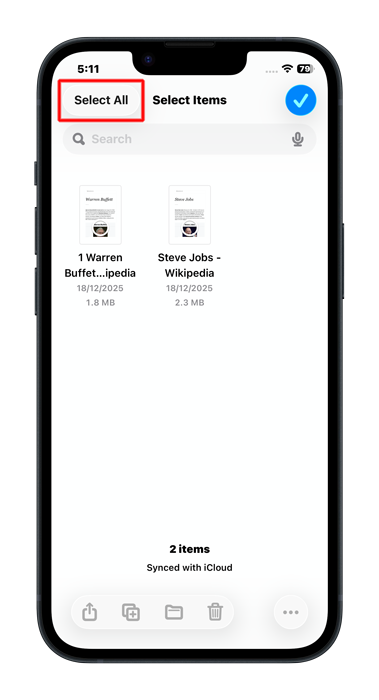 Select the files you want to merge by tapping them one after the other. Alternatively, you can tap the Select All to select all the files on one go:-