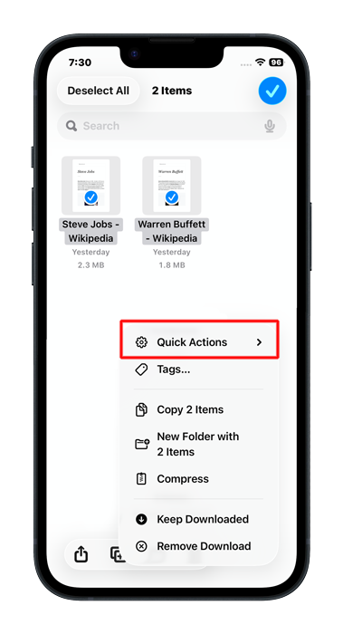 That will show us a list of the things we can do with the files. Tap on Quick Actions:-