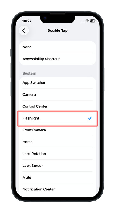 And we are done. Simply tap on the back of your iPhone twice (or thrice if you picked triple tap earlier), and the flashlight will turn on. Do it again & it will turn off. In case it didn’t work, keep reading.