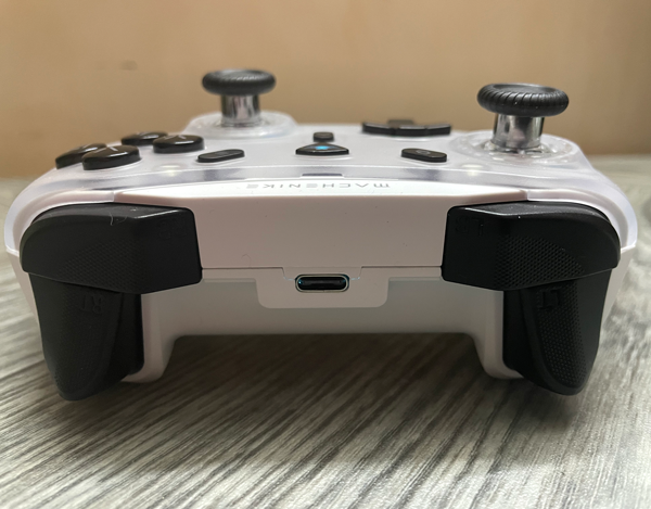 At first glance, Machenike G5Pro Max SE is a really good-looking controller, although I prefer simple elegant look. At the front, there is a battery indicator between the d-pad & the right stick, the number of lights turned on indicates how much of the battery is left.